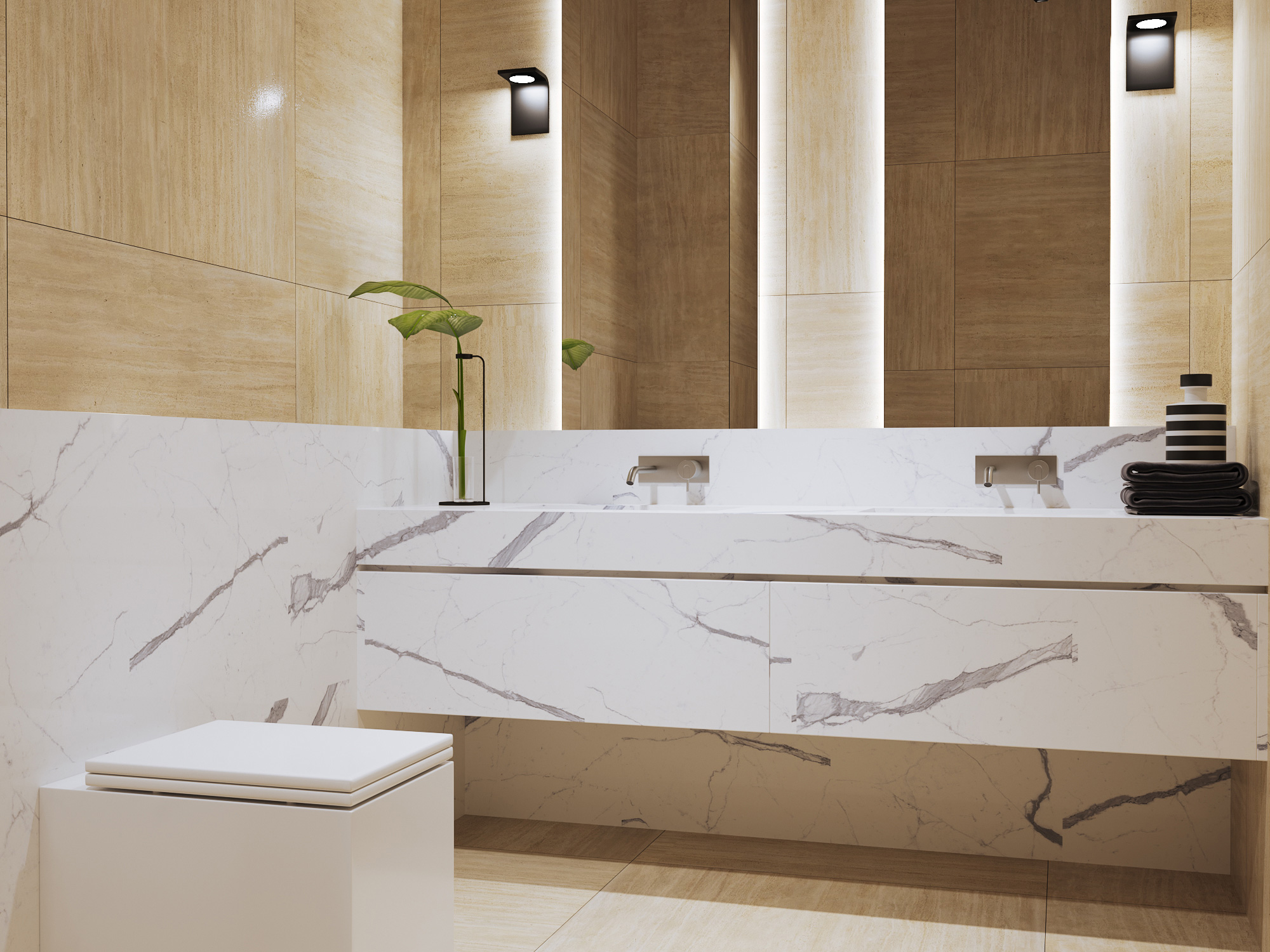 Designers, iconic furniture was used to achieve elegant, sophisticated look.